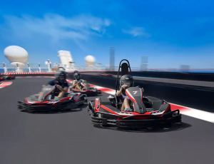 Diversão a todo vapor, a pista de corrida do Prima está mais extensa, mais larga e mais dinâmica do que nunca. O circuito inclui uma reta com 420 metros, 14 curvas e percorre três níveis de altura. Em cada largada, 15 pilotos participam da corrida, atingindo velocidades superiores a 50 km/h.
